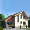 Краткая характеристика проекта: дом с мансардой 12x10 (12 на 10 м), общей площадью 154 кв.м, из газобетона (пеноблоков), с котельной, с кухней-столовой.