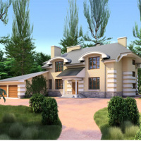 Краткая характеристика проекта: дом с мансардой и цокольным этажом 18x18 (18 на 18 м), общей площадью 547 кв.м, из кирпича, с гаражом, с бассейном, с зимним садом, с котельной, с кухней-столовой.