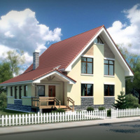 Краткая характеристика проекта: дом с мансардой 14x10 (14 на 10 м), общей площадью 173 кв.м, из газобетона (пеноблоков), с котельной, с кухней-столовой.