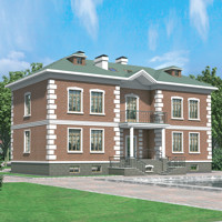 Краткая характеристика проекта: двухэтажный дом с цоколем и мансардой 18x9 (18 на 9 м), общей площадью 605 кв.м, из кирпича, с котельной.
