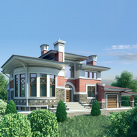 Краткая характеристика проекта: двухэтажный дом с цоколем 16x21 (16 на 21 м), общей площадью 464 кв.м, из кирпича, с гаражом, со вторым светом, с террасой, с котельной.