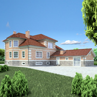 Краткая характеристика проекта: двухэтажный дом с цоколем 17x29 (17 на 29 м), общей площадью 437 кв.м, из кирпича, с гаражом, с бассейном, с котельной.