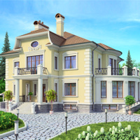Краткая характеристика проекта: двухэтажный дом с цоколем 15x16 (15 на 16 м), общей площадью 608 кв.м, из кирпича, с террасой, с котельной, с кухней-столовой.