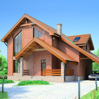 Краткая характеристика проекта: дом с мансардой 12x12 (12 на 12 м), общей площадью 210 кв.м, из кирпича, с террасой, с котельной, с кухней-столовой.