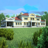 Краткая характеристика проекта: двухэтажный дом с цоколем 27x36 (27 на 36 м), общей площадью 1037 кв.м, из кирпича, с бассейном, с котельной.