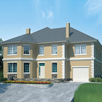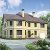 Краткая характеристика проекта: двухэтажный дом 18x16 (18 на 16 м), общей площадью 350 кв.м, из кирпича, с гаражом, с котельной, с кухней-столовой.
