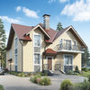 Краткая характеристика проекта: дом с мансардой 11x11 (11 на 11 м), общей площадью 192 кв.м, из дерева, с котельной, с кухней-столовой.