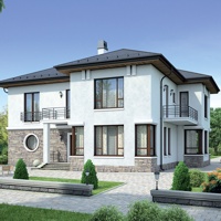 Краткая характеристика проекта: двухэтажный дом 16x17 (16 на 17 м), общей площадью 249 кв.м, из кирпича, с террасой, с котельной, с кухней-столовой.