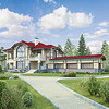 Краткая характеристика проекта: дом с мансардой и цокольным этажом 19x16 (19 на 16 м), общей площадью 476 кв.м, из кирпича, со вторым светом, с террасой, с котельной, с кухней-столовой.