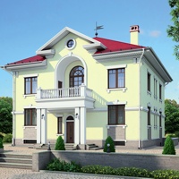 Краткая характеристика проекта: двухэтажный дом с цоколем 16x16 (16 на 16 м), общей площадью 448 кв.м, из кирпича, с котельной, с кухней-столовой.