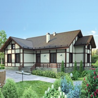 Краткая характеристика проекта: одноэтажный дом 15x15 (15 на 15 м), общей площадью 121 кв.м, из кирпича, с террасой, с котельной.