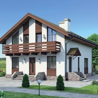 Краткая характеристика проекта: дом с мансардой 12x8 (12 на 8 м), общей площадью 130 кв.м, из газобетона (пеноблоков), с террасой, с котельной.