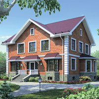 Краткая характеристика проекта: двухэтажный дом с цоколем 14x10 (14 на 10 м), общей площадью 336 кв.м, из кирпича, с котельной, с кухней-столовой.