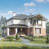 Краткая характеристика проекта: двухэтажный дом 19x16 (19 на 16 м), общей площадью 274 кв.м, из газобетона (пеноблоков), с террасой, с кухней-столовой.