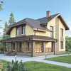 Краткая характеристика проекта: дом с мансардой 14x10 (14 на 10 м), общей площадью 150 кв.м, из газобетона (пеноблоков), с террасой, с котельной.