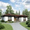 Краткая характеристика проекта: одноэтажный дом 16x12 (16 на 12 м), общей площадью 129 кв.м, из газобетона (пеноблоков), с террасой, с котельной, с кухней-столовой.