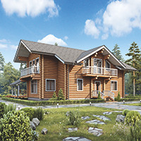 Краткая характеристика проекта: дом с мансардой 15x13 (15 на 13 м), общей площадью 222 кв.м, из дерева, со вторым светом, с террасой, с котельной, с кухней-столовой.