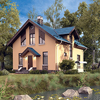 Краткая характеристика проекта: дом с мансардой 11x9 (11 на 9 м), общей площадью 146 кв.м, из газобетона (пеноблоков), с котельной.