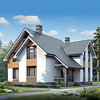 Краткая характеристика проекта: дом с мансардой 16x15 (16 на 15 м), общей площадью 205 кв.м, из кирпича, с террасой, с котельной, с кухней-столовой.