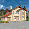 Краткая характеристика проекта: дом с мансардой 13x13 (13 на 13 м), общей площадью 201 кв.м, из газобетона (пеноблоков), со вторым светом, с террасой, с котельной, с кухней-столовой.