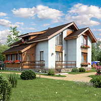 Краткая характеристика проекта: дом с мансардой 11x12 (11 на 12 м), общей площадью 165 кв.м, из газобетона (пеноблоков), с террасой, с котельной.