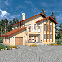 Краткая характеристика проекта: дом с мансардой 18x13 (18 на 13 м), общей площадью 234 кв.м, из газобетона (пеноблоков), с гаражом, со вторым светом, с котельной, с кухней-столовой.