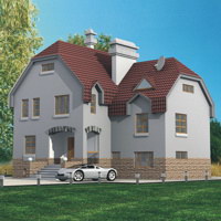 Краткая характеристика проекта: двухэтажный дом с цоколем и мансардой 12x10 (12 на 10 м), общей площадью 250 кв.м, из газобетона (пеноблоков), с гаражом, с бассейном, с террасой, с котельной.