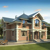 Краткая характеристика проекта: дом с мансардой 14x14 (14 на 14 м), общей площадью 235 кв.м, из кирпича, с котельной, с кухней-столовой.