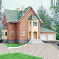 Краткая характеристика проекта: двухэтажный дом с цоколем 13x10 (13 на 10 м), общей площадью 291 кв.м, из газобетона (пеноблоков), с гаражом, с бассейном, с террасой, с котельной.