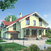 Краткая характеристика проекта: дом с мансардой 14x13 (14 на 13 м), общей площадью 218 кв.м, из кирпича, с гаражом, с террасой, с котельной, с кухней-столовой.