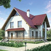 Краткая характеристика проекта: дом с мансардой 14x13 (14 на 13 м), общей площадью 195 кв.м, из кирпича, с террасой, с котельной, с кухней-столовой.