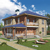 Краткая характеристика проекта: дом с мансардой 13x13 (13 на 13 м), общей площадью 189 кв.м, из кирпича, с террасой, с котельной.