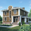 Краткая характеристика проекта: двухэтажный дом с цоколем 13x13 (13 на 13 м), общей площадью 337 кв.м, из кирпича, с бассейном, с террасой, с котельной, с кухней-столовой.