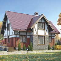 Краткая характеристика проекта: дом с мансардой 13x8 (13 на 8 м), общей площадью 111 кв.м, из кирпича, с террасой, с котельной.