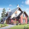 Краткая характеристика проекта: дом с мансардой 14x13 (14 на 13 м), общей площадью 180 кв.м, из кирпича, с гаражом, с котельной, с кухней-столовой.