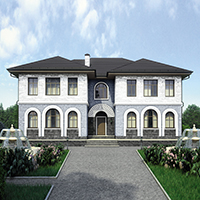 Краткая характеристика проекта: двухэтажный дом 16x14 (16 на 14 м), общей площадью 354 кв.м, из кирпича, с гаражом, с террасой, с котельной.