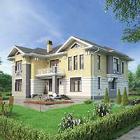 Краткая характеристика проекта: двухэтажный дом 17x16 (17 на 16 м), общей площадью 295 кв.м, из кирпича, с котельной, с кухней-столовой.