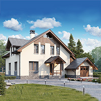 Краткая характеристика проекта: дом с мансардой 14x15 (14 на 15 м), общей площадью 184 кв.м, из кирпича, с гаражом, с террасой, с котельной.