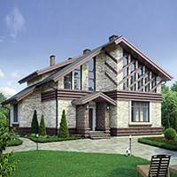 Краткая характеристика проекта: дом с мансардой 14x11 (14 на 11 м), общей площадью 176 кв.м, из газобетона (пеноблоков), с котельной, с кухней-столовой.