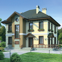Краткая характеристика проекта: двухэтажный дом 12x13 (12 на 13 м), общей площадью 198 кв.м, из кирпича, с террасой, с котельной, с кухней-столовой.