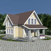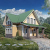 Краткая характеристика проекта: дом с мансардой 11x8 (11 на 8 м), общей площадью 110 кв.м, из газобетона (пеноблоков), с террасой, с котельной.