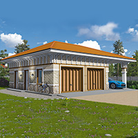 Краткая характеристика проекта: одноэтажный дом 11x9 (11 на 9 м), общей площадью 57 кв.м, из кирпича, с гаражом.