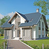 Краткая характеристика проекта: дом с мансардой 12x14 (12 на 14 м), общей площадью 191 кв.м, из газобетона (пеноблоков), с террасой, с котельной, с кухней-столовой.