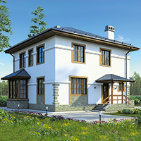 Краткая характеристика проекта: двухэтажный дом 10x9 (10 на 9 м), общей площадью 166 кв.м, каркасного, с котельной, с кухней-столовой.