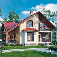 Краткая характеристика проекта: дом с мансардой 12x10 (12 на 10 м), общей площадью 136 кв.м, из газобетона (пеноблоков), с террасой, с котельной, с кухней-столовой.