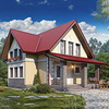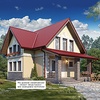 Краткая характеристика проекта: дом с мансардой 11x8 (11 на 8 м), общей площадью 109 кв.м, из газобетона (пеноблоков), с террасой, с котельной, с кухней-столовой.