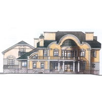 Краткая характеристика проекта: двухэтажный дом 25x19 (25 на 19 м), общей площадью 650 кв.м, из кирпича, с бассейном, с котельной.