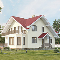 Краткая характеристика проекта: дом с мансардой 12x9 (12 на 9 м), общей площадью 190 кв.м, каркасного, с террасой, с котельной, с кухней-столовой.