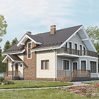 Краткая характеристика проекта: дом с мансардой 12x9 (12 на 9 м), общей площадью 164 кв.м, каркасного, с террасой, с котельной, с кухней-столовой.