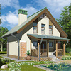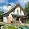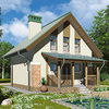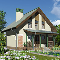 Краткая характеристика проекта: дом с мансардой 7x9 (7 на 9 м), общей площадью 63 кв.м, из газобетона (пеноблоков), с террасой, с котельной, с кухней-столовой.